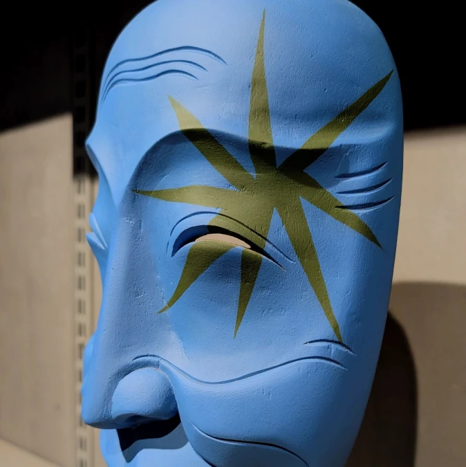 Clown Mask I is a hand-carved and hand-painted table sculpture that explores the dual nature of the clown- both joyful and unsettling. Crafted with exceptional skill, this piece blends fine craftsmanship with thoughtful design, drawing inspiration from North American tribal carving traditions. While rooted in historical influence, its minimalist detailing and contemporary color palette give it a distinctly modern character.