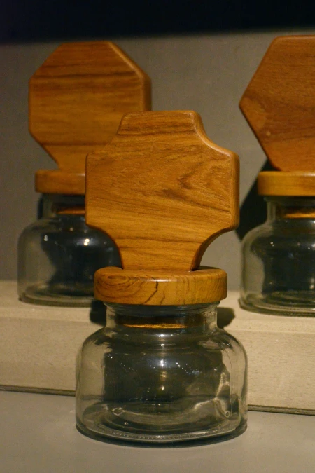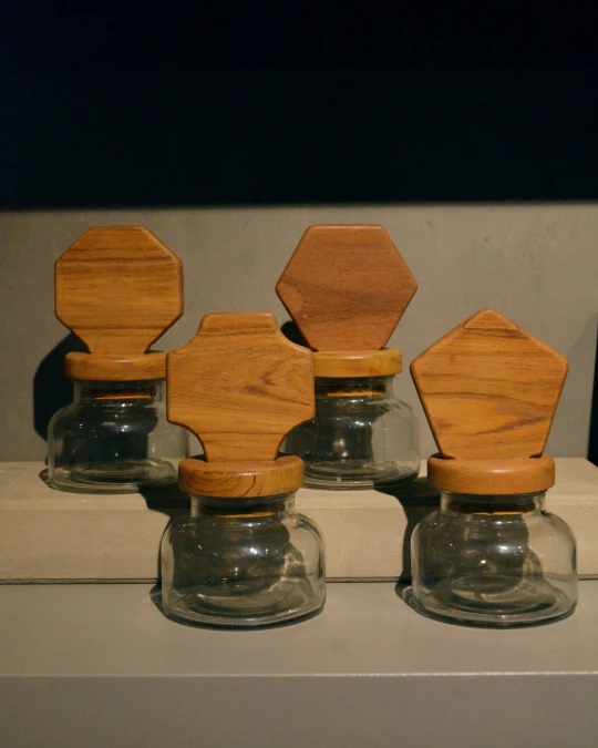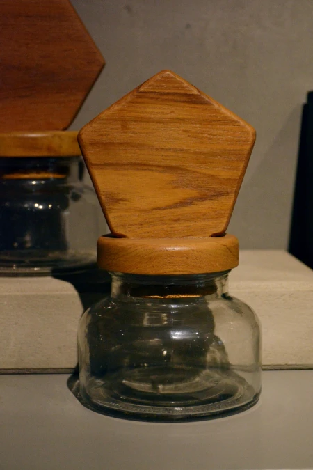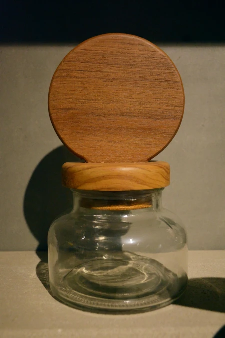 This series examines the intersection of pure form and utility, representing a deliberate exercise in minimalism. By balancing the transparency of glass with the organic warmth of hand-finished teak wood, these designer jars elevate the utilitarian object into a sculptural experience. Each piece stands 11 inches in height with a 5 inch diameter and features a sculptural lid that explores the dialogue between structure and void.