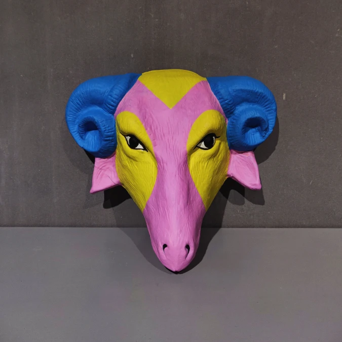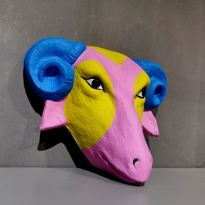 Materials: Papier-mâché, Natural clay, professional acrylic paints, layered with various surface protective natural PU